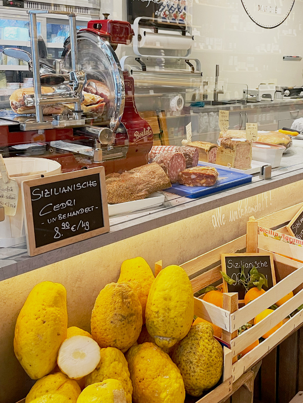 Im Feinkostgeschäft Monsieur Daniel gibt es ein großes Sortiment an wohlschmeckenden und naturbelassenen französischen Käsesorten, frisch gebackenem Brot und Croissants, klassischer französischer Viennoiserie, Weinen, die aus kleinen Winzerbetrieben stammen, Marmeladen, Honig und vieles andere mehr. Übrigens: In der angenehmen und entspannten Atmosphäre in unserem Bistro – oder auf der Terrasse – schmecken ein Glas Wein oder auch die ein oder andere kulinarische Leckerei vor Ort einfach herrlich. Das ist französisches Lebensgefühl und »Genuss pur«!